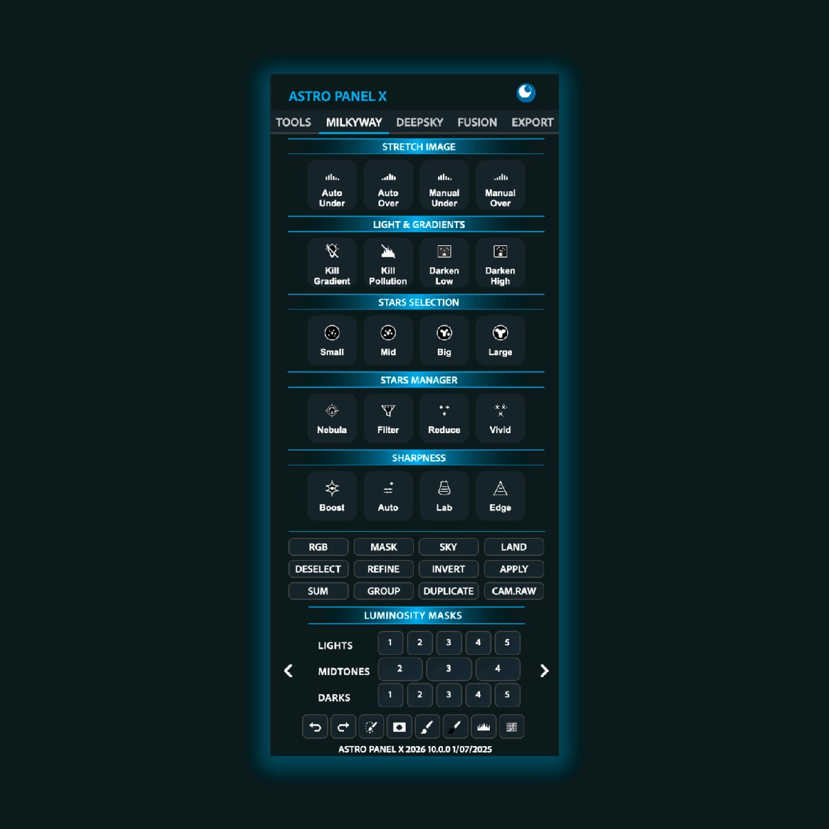 Astro Panel X 2026 is a bold, complete overhaul. It isn’t just faster or more beautiful, it’s smarter. The Luna AI engine brings true automation. The Fusion engine brings unmatched speed. The new UI makes editing easier than ever. If you use Photoshop for astrophotography, this plugin is a must-have.