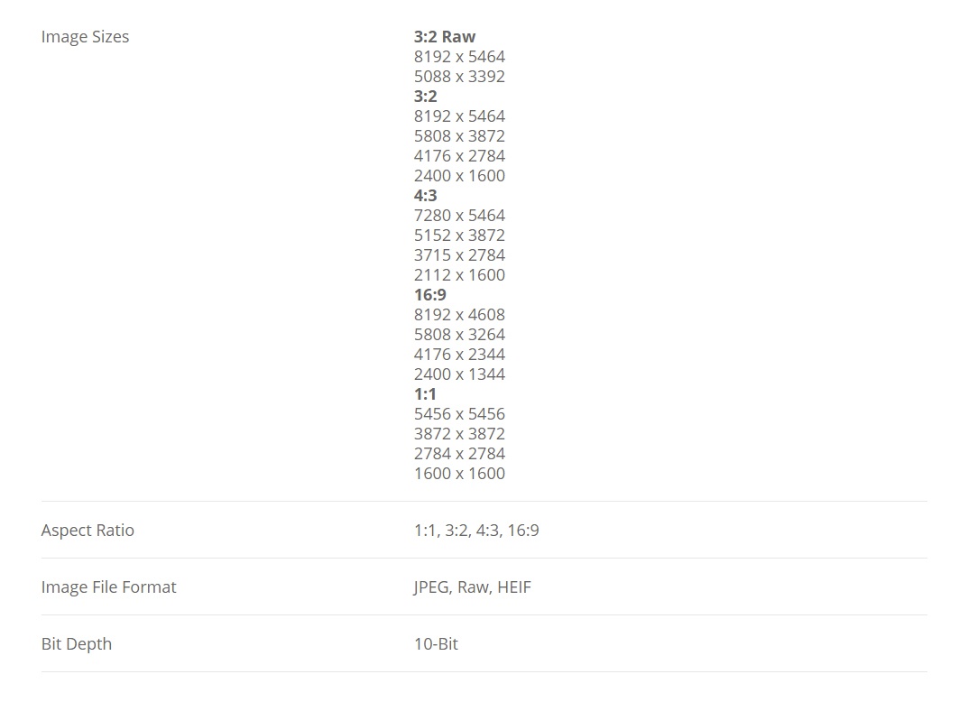 | Max resolution | 8192 x 5464 | 8192 x 5464 | 4096 x 2160 |
