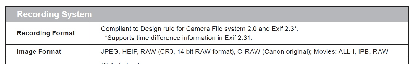 | Stills File format | RAW, JPG, HEIF | RAW, JPG | JPG |