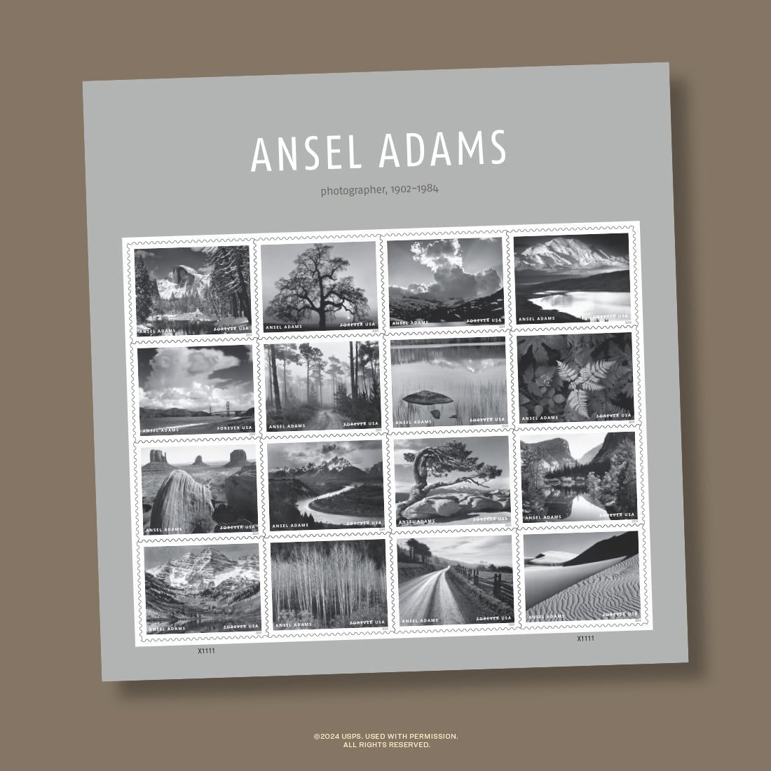 “Ansel Adams made a career of crafting photographs in exquisitely sharp focus and nearly infinite tonality and detail,” says the USPS.