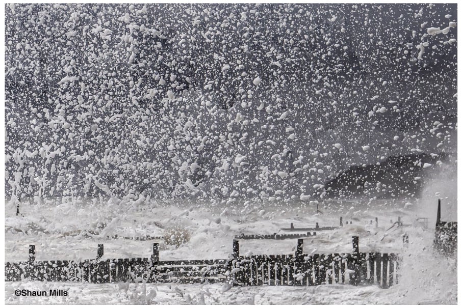 During a storm on Britain’s east coast, waves crash against the sea defences at Overstrand, Norfolk, sending sea spray high into the air. Photographer Shaun Mills writes: “A photo trip to the Norfolk coast coincided with a storm, and I took the opportunity to capture some incredibly rough seas. The image was taken to isolate the individual spray, giving the impression of a snowstorm.”