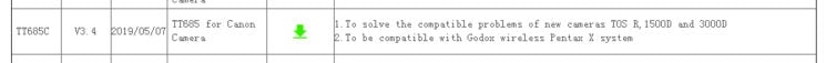This still leaves the Godox TT685-C without a new firmware, but in a statement released by Godox to retailers and sent to us by Erlich LTD, a new TT685-C firmware is on the way too.