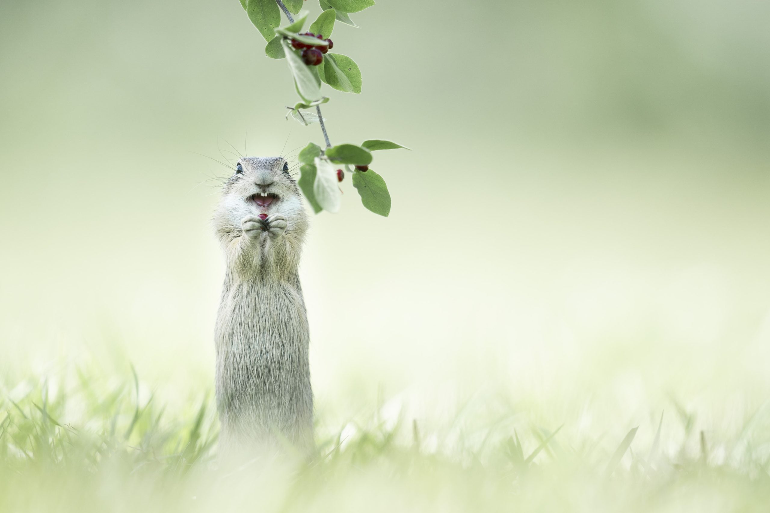 This year’s final shortlist includes 41 standalone photographs, three videos, and three Portfolio entries. These include a kangaroo rocking the air guitar, some dancing horses, a balletic otter, a penguin asking for directions… To name just a few. Like every year, some of these photos had me laugh out loud. And some are total “mood” as kids today would say. Kids still use that expression, right? I’ll show you these photos first to show you what I mean: