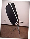 - Screw the frame to the tripod and tighten the screw with the disk and ‘butterfly’. I used an aluminum stripe to keep the frame from wobbling, but it is not necessary. See picture for details