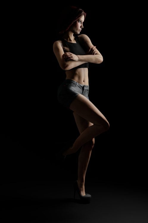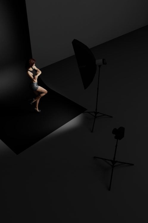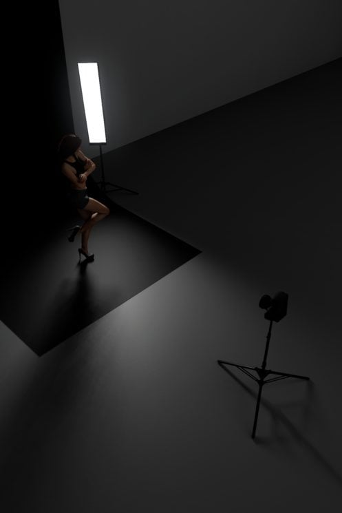 This setup uses a light source next to or just behind the model. A striplight works best here so that there’s a clean edge drawn across the model.