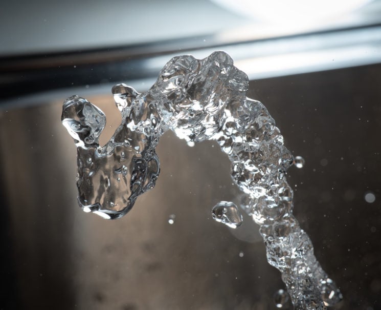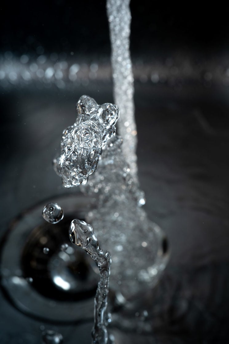 What you should ideally do is place the flash behind the water stream, but not directly behind it – more at a slight angle so that the flash does not shine straight into your lens. You should have some kind of diffuser on your flash for better-looking results – I used a plastic light dome that I got at a hardware store. See the video for more details. But you could also just point the flash at a white surface close to the sink, such as white tiles, or maybe the underside of your cupboard is white? That will give very good diffusion.