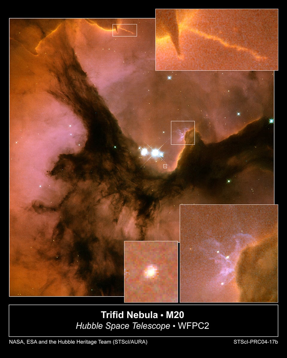Hubble Photographs Young Stars and Jets in the Trifid Nebula