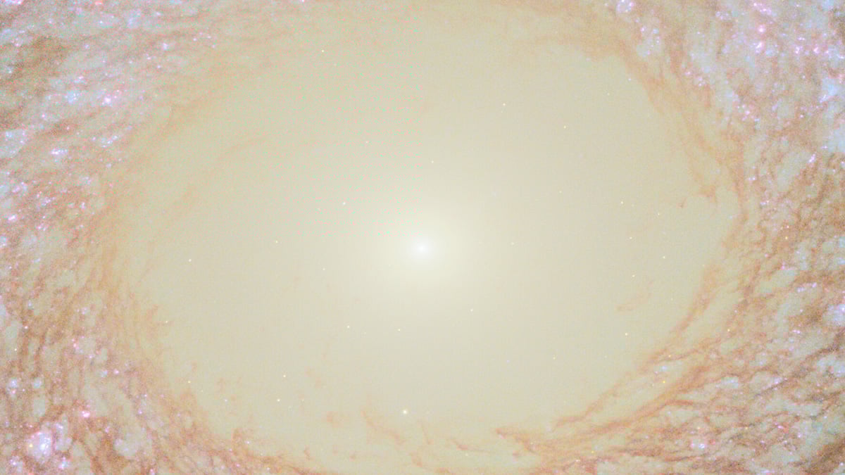 Blue clusters in the outer arms reveal pockets of recent star formation. Dusty lanes wind across the disk, absorbing light and shaping the visible pattern. Small reddish clouds mark regions where hot young stars excite hydrogen gas. These H-alpha emissions give clues about ongoing stellar nurseries. In sharp contrast, the bulge at the center appears smooth and featureless. The lack of gas means the core is no longer forming stars. Hubble’s image makes this contrast clear, showing a galaxy with two distinct stories unfolding simultaneously.