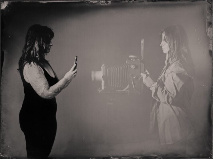 Corrine at Corrine West Photography booked a wet plate workshop with me before the pandemic started. Two years later we were finally able to do it. The main subject was to get comfortable with the wet collodion process and to create images similar to the ones of spirit photographer William H. Mumler. Mr. Mumler created images (probably double exposures) where his clients could take a picture with their deceased relatives.