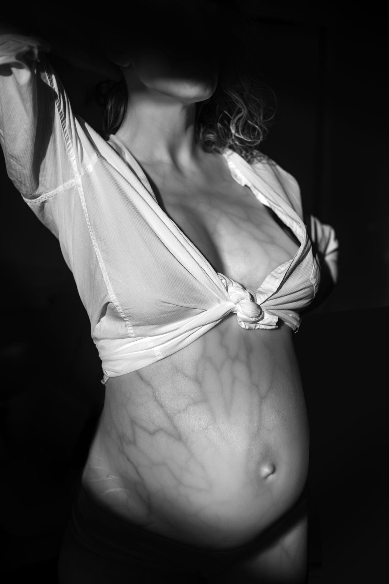 Among other things, pregnancy makes veins more visible on the surface. This happens due to hormonal changes and increased blood volume, which can cause weakened and dilated veins. It may lead to the development of varicose veins and spider veins on the legs, breasts, and abdomen. Or, in this case, to a magnificent pregnancy photo.