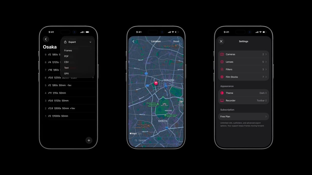 VT: The app is really aimed at photographers who care about their process as much as the final image. That could be a hobbyist, a student, or a professional, but the common thread is intentionality. If you enjoy understanding how you work, learning from past rolls, and keeping a clear record of your cameras, lenses, and settings, Frames makes that much easier. It’s less about obsessing over details and more about giving structure to your practice so you can focus on being creative.