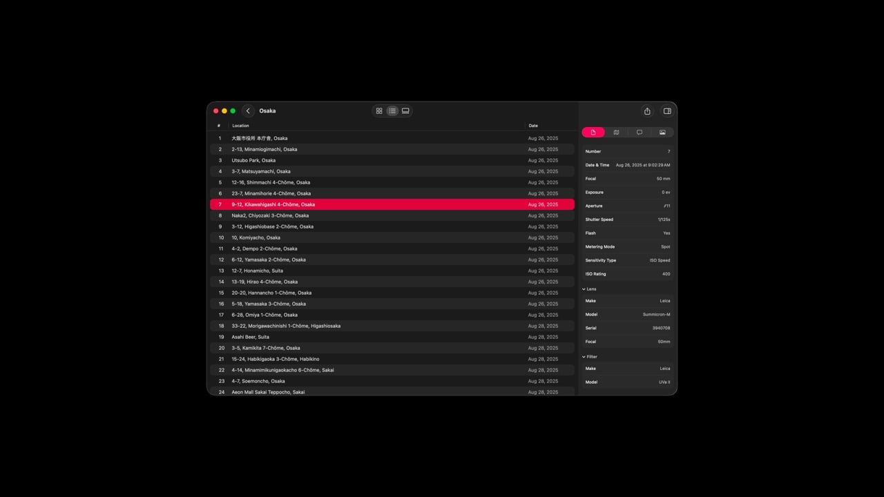 At the same time, we live in a digital world. While the shooting process is analog, viewing, sharing, and organizing images almost always happens digitally. Unlike digital cameras, film scans arrive with almost no information attached. There is no record of aperture, shutter speed, location, or even proper dates. This makes it hard to learn from past work and limits how images can be browsed or displayed on platforms and in photo software.