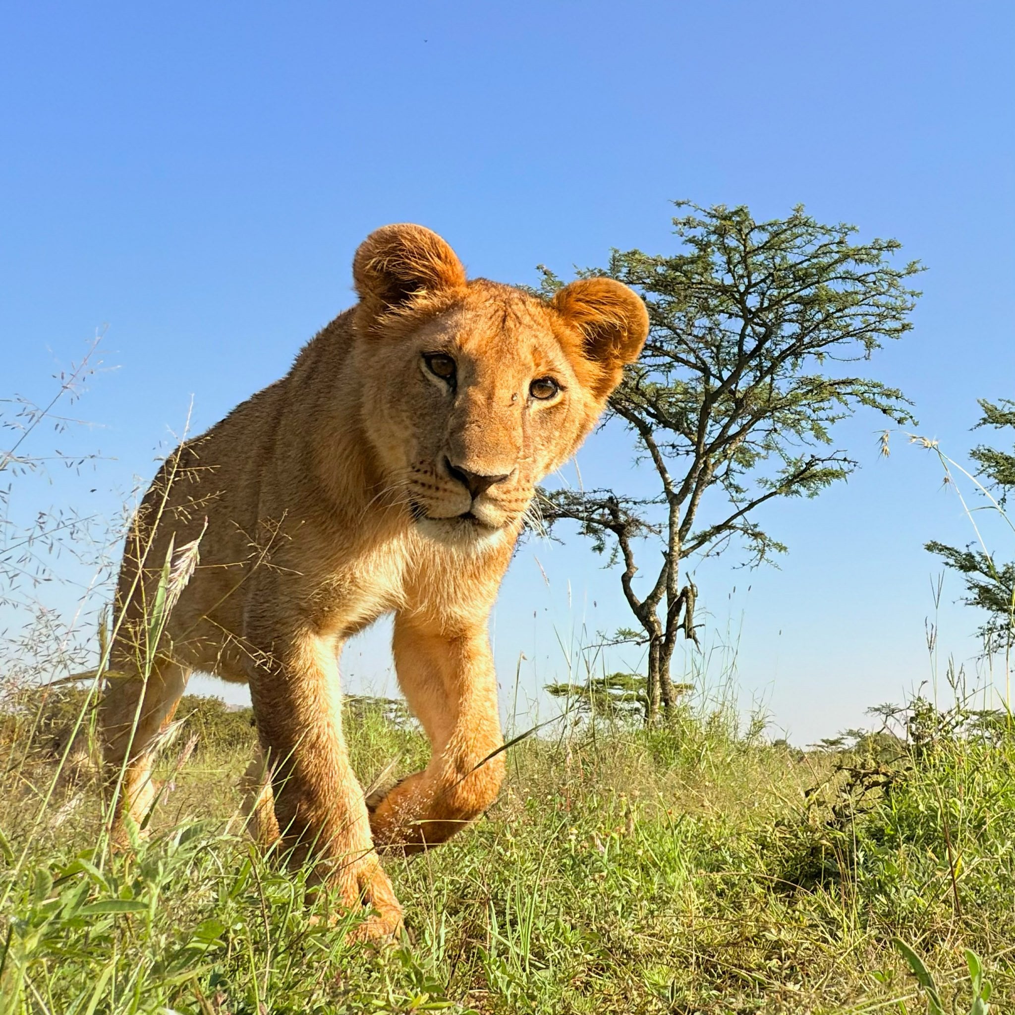 I wondered if I could use my Apple Watch Ultra to remotely trigger the iPhone camera, so we set the iPhone 16 Pro on the ground, anxious to see if the lions might come check it out.
