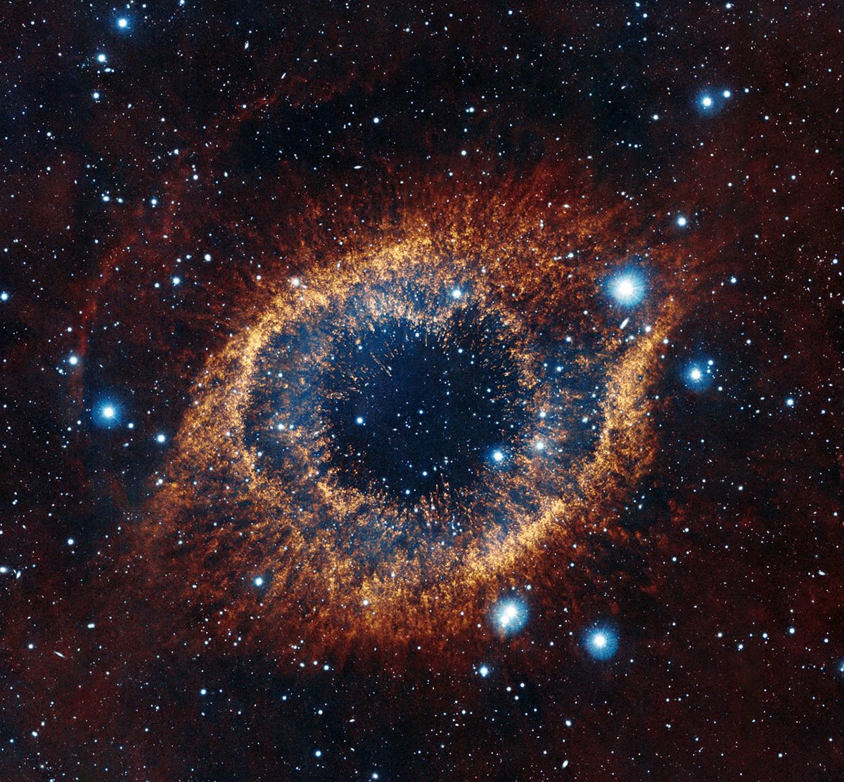 Earlier observations revealed the Helix’s broad ring-like morphology. However, those views masked the true complexity of the nebula’s interior. JWST’s infrared sensitivity now exposes the interaction between successive mass-loss phases, which is critical for understanding how planetary nebulae evolve.