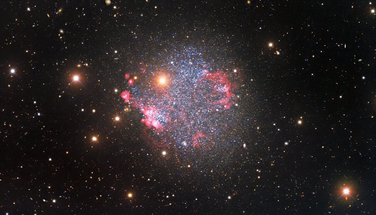 Sextans A is small by galactic standards. It spans only a few thousand light-years and contains far fewer stars than the Milky Way. Yet its scientific value lies in its chemical simplicity rather than its size. The galaxy contains only a few percent of the heavy elements found in the Sun. Astronomers describe such environments as metal-poor because they lack elements forged in earlier stellar generations.