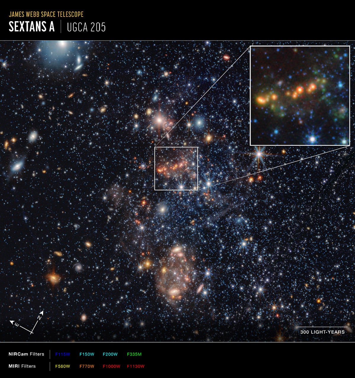 The new view of Sextans A relies on two key JWST instruments. NIRCam observes near-infrared light and traces stars and warm dust. MIRI operates at longer wavelengths, detecting cooler dust and molecular emission features. Together, these instruments provide a layered view of galactic structure and chemistry.