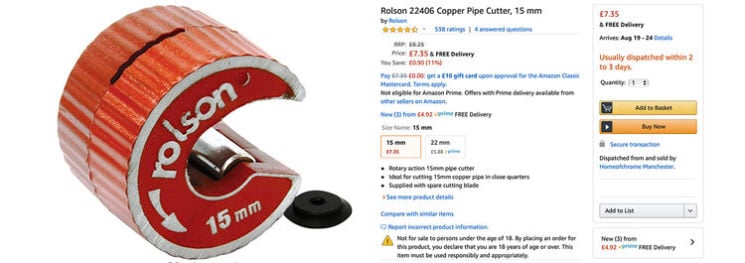There is a bunch of ways to cut copper pipe and you could even use a hacksaw. But I will say that this little tool is ingenious, incredibly quick and easy to use, but more importantly, it actually leaves the ends of your pipes curled in slightly. This not only makes it safer with no sharp edges, but the pipes are now far easier to use with the Speedfit connectors. I highly recommend you use this cutter or one similar.