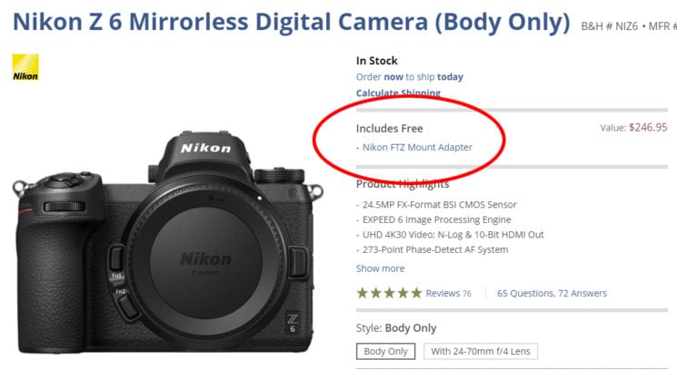 Originally reported as just a weekend sale, it appears this deal might actually be a little more long term. Nikon previously bundled the FTZ F Mount to Z Mount adapter with their Z6 and Z7 mirrorless cameras as a promotional bundle offering $100 discount as a package. Now the FTZ adapter is included with the purchase of either camera completely free.