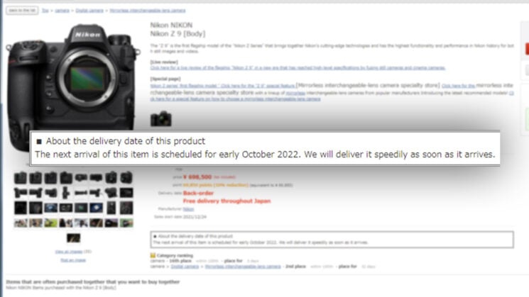 And now Japanese camera retail giant Yodobashi says that the Nikon Z9 isn’t going to start shipping out again now until October 2022. Now, we all know Nikon’s struggling generally in the camera market, but this isn’t a problem for just Nikon. Both Canon and Sony have had to massively cut down on production with newly announced items seeing delays of unknown duration.