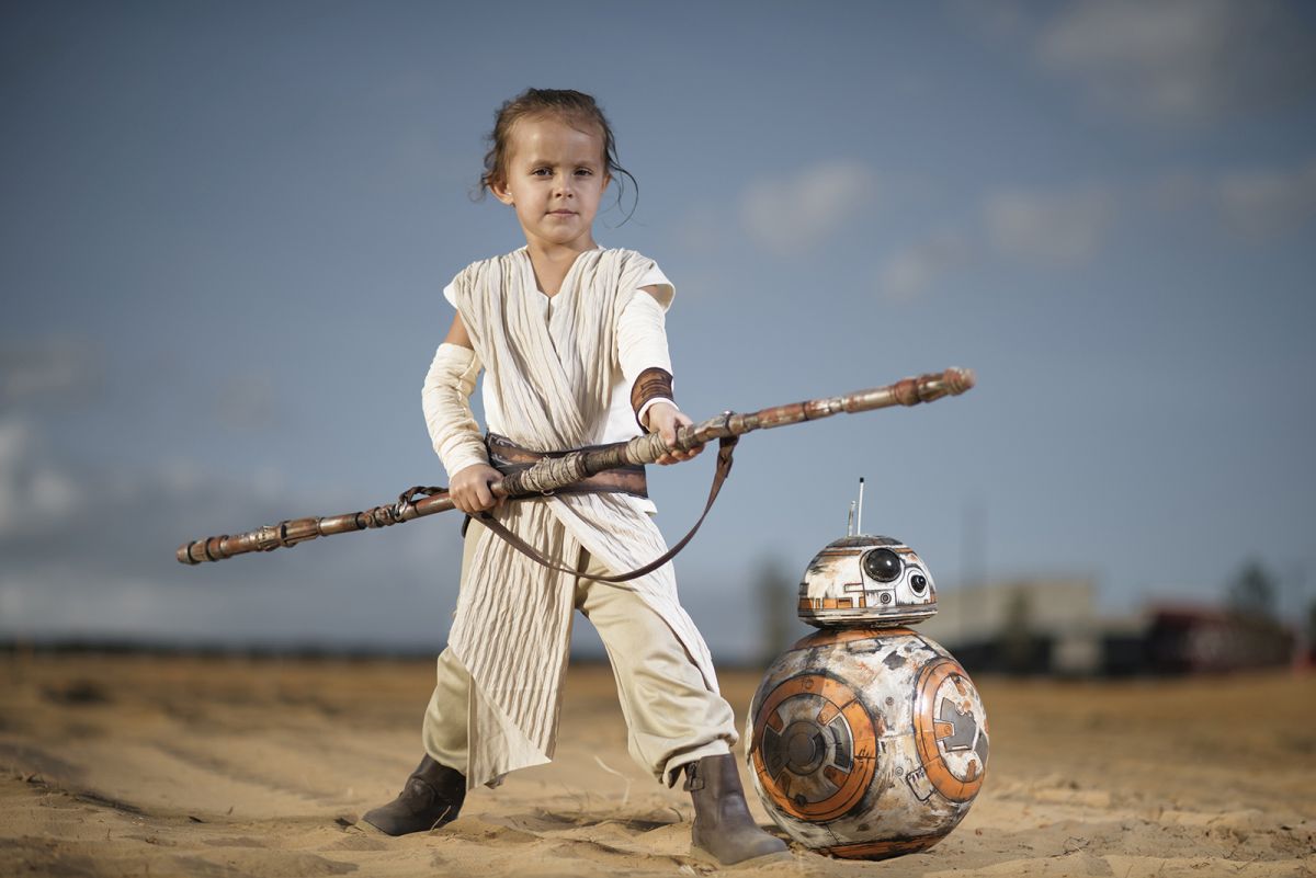 s I watched my three year old daughter wholeheartedly repeating Rey’s movie lines that I didn’t even know she knew to a plastic droid, in the middle of a construction site, in 90 degree heat, my thoughts that characters like Rey are sorely needed were affirmed. My daughter’s dedication to the character kept this series from turning into “just another little girl playing dress up” and made it easy to stay true to my original intent, to create a series my daughter would be proud of when she is older. The process of creating the resulting images also reminded me of the importance of personal photography projects. Whenever I work on creating photos that actually mean something to me on a personal level, I’m reminded of why I became a professional photographer in the first place, and those projects always end up being my best work. These photos mean a lot to me, and I know that I’ll cherish the memory of creating them alongside my little one for forever.