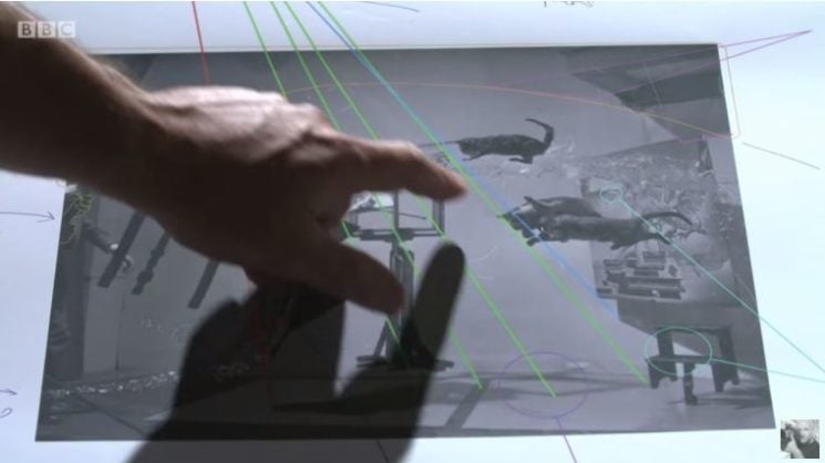 When the studio was set up, it was time to figure out the direction of light. It was a tricky part, but as you can see from the recreated photo, it was successful. Taylor analyzed the light and shadows in the original image and sketched it, and then recreated the light on set.