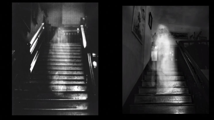 Of course, while some were fascinated and terrified, the others were skeptical. There must have been a way to fake this photo! Mathieu did it, again with a friend’s help. The bearded “Brown Lady” wrapped himself in a white sheet, stood on the stairs and wiggled a bit. During the day, the result was disappointing: