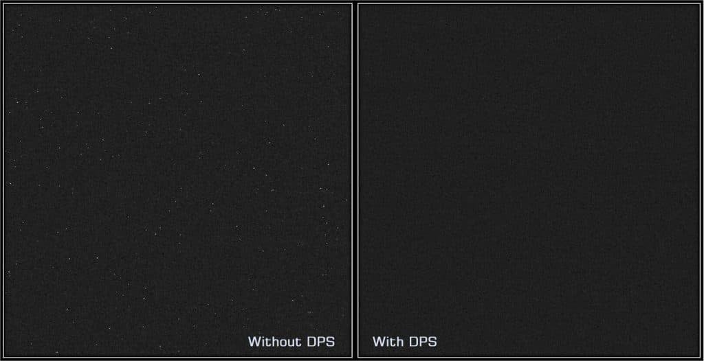 The camera also implements Dead Pixel Suppression (DPS) technology. During calibration, the system identifies hot and dead pixels using dark frames. During capture, it replaces these pixels with values derived from surrounding data. This process reduces visible defects without altering the valid signal.