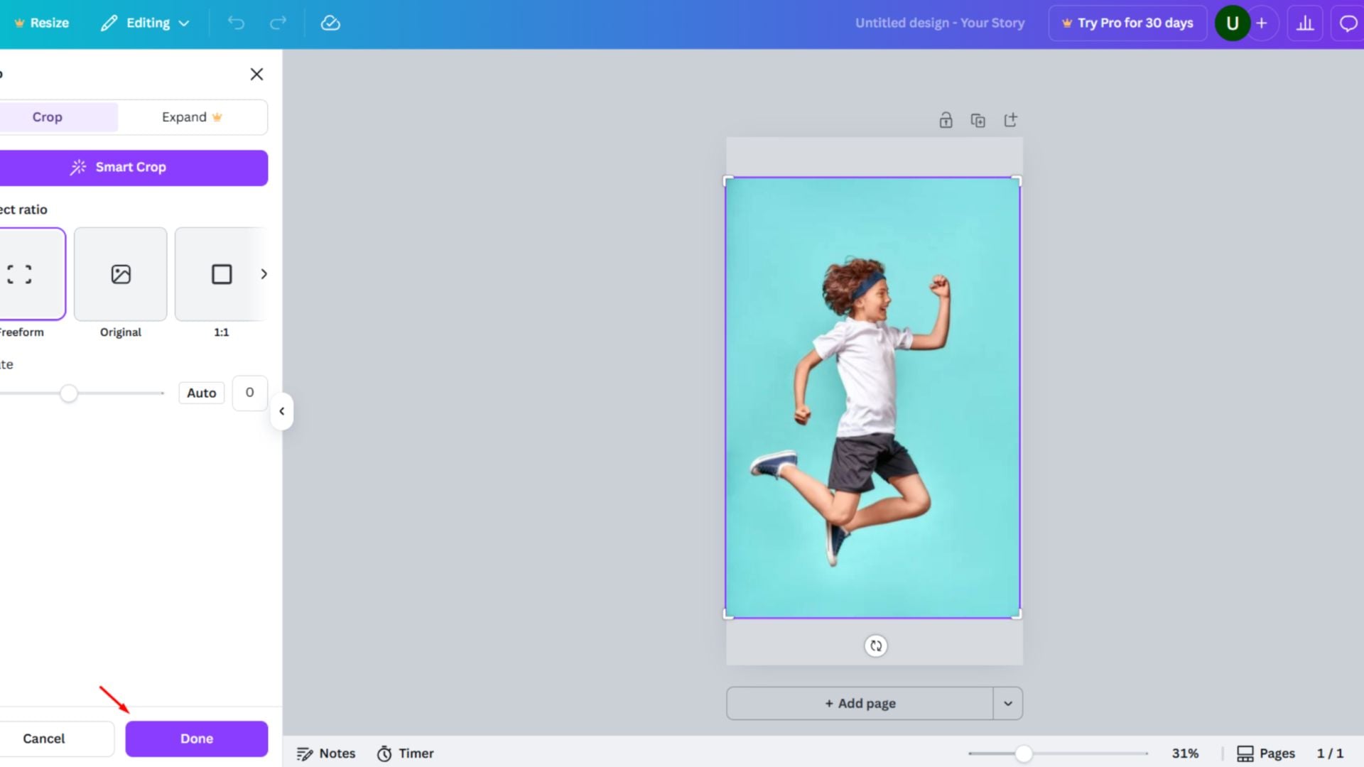 Click “Done” in the side panel or click outside the element to finish cropping.