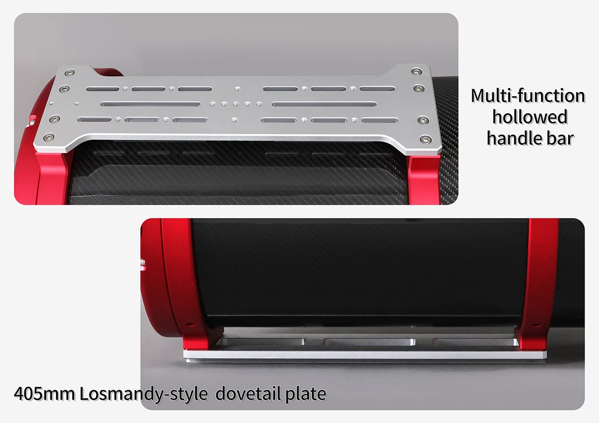 The SCA310 uses a carbon fiber tube. Carbon fiber provides high stiffness with minimal thermal expansion. During long imaging sessions, ambient temperature can change significantly. Tube expansion shifts focus. Carbon fiber minimizes this effect and helps maintain optical alignment.