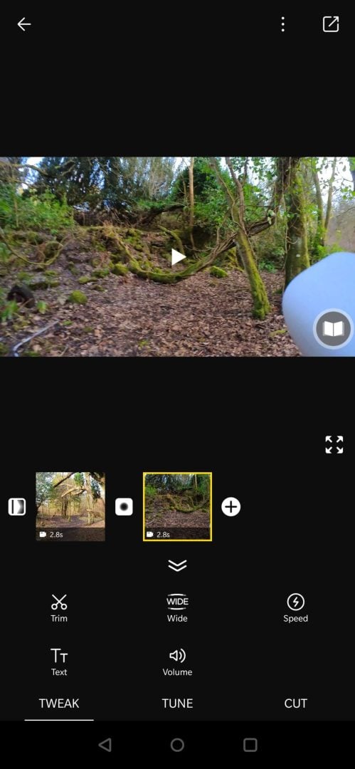 Personally, I prefer editing on the desktop using DaVinci Resolve, so I transcode the clips from the camera using Insta360 Studio 2021 (a process that is surprisingly quick, given how slow Insta360 Studio can sometimes be when transcoding 360° footage) so I tend not to build up too many draft projects on my phone with the smartphone app. Copying files to the desktop is as easy as putting the camera in the case, and connecting via USB cable. It shows up as another drive in Explorer and you can just drag the files across.