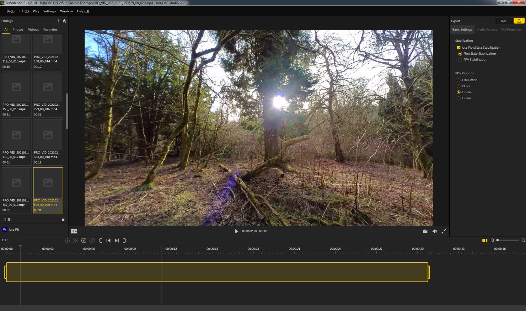 The Insta360 Studio 2021 app doesn’t currently show me previews of footage shot with the GO 2 in the file list on the left of the interface, although this is a preview version of the new app with GO 2 support, so that might be fixed in the newest version when you read this.