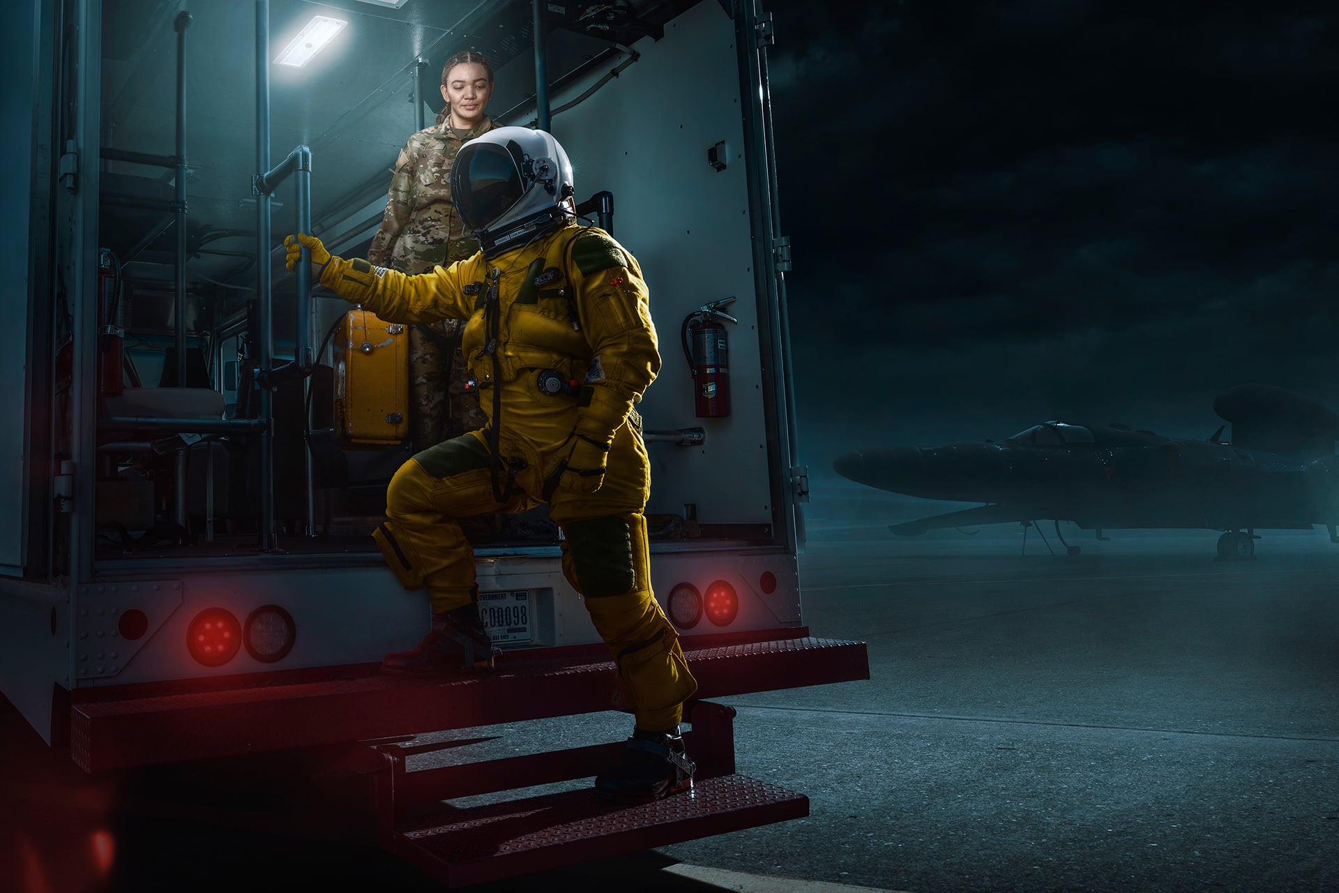 Throughout the whole process, I had many candid conversations with those in the PSD squadron. While they were connecting my suit to the generators, adjusting the seal around my face, or checking the pressure readout on my gloves, we talked about everything from video games to watches to the photoshoot itself. During one of these conversations, I promised them that after I landed I would photograph their squadron in addition to the more extensive photoshoot planned for the U2 pilots. Unfortunately, one of the wild side effects of my high-altitude flight was a significant loss of short-term memory. Those around me were amused as I forgot whole conversations mere hours after having them, and still, to this day, I have no memory of talking to my parents or my daughter after landing. While it was a side effect I was woefully unprepared for, it was worth it to capture the incredible photos that I returned with.