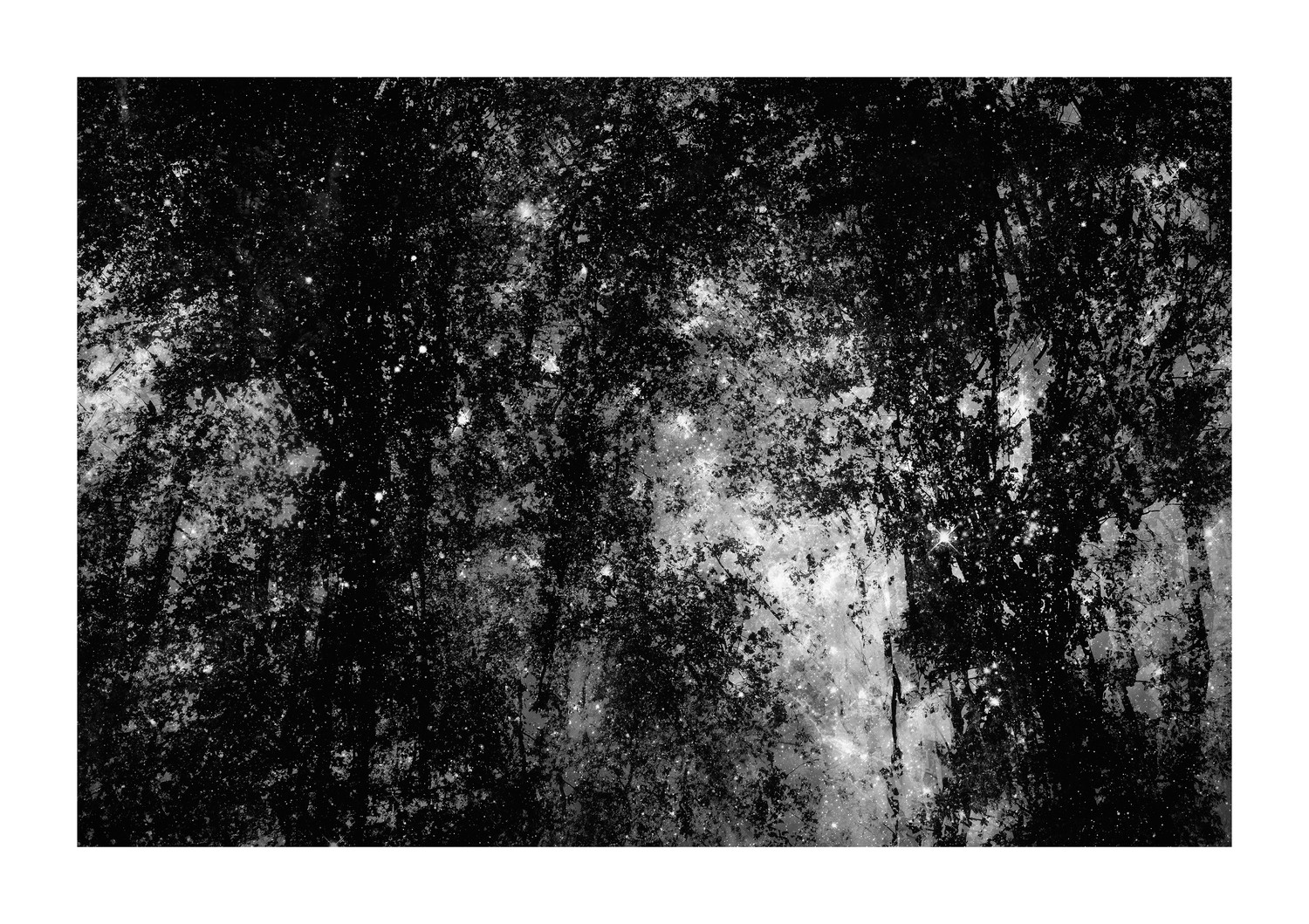 Mist weaves between the trees, softening their outlines and turning the forest into a fleeting vision suspended in silence.