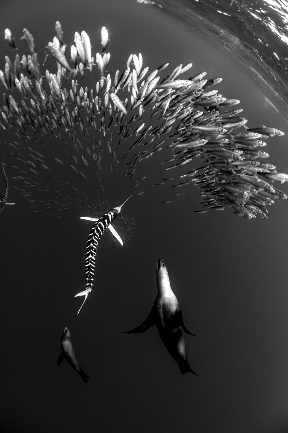 The sardine run in Mexico is a feeding frenzy, sea lions, striped marlins, whales and the list goes on and on. The ocean truly alive.