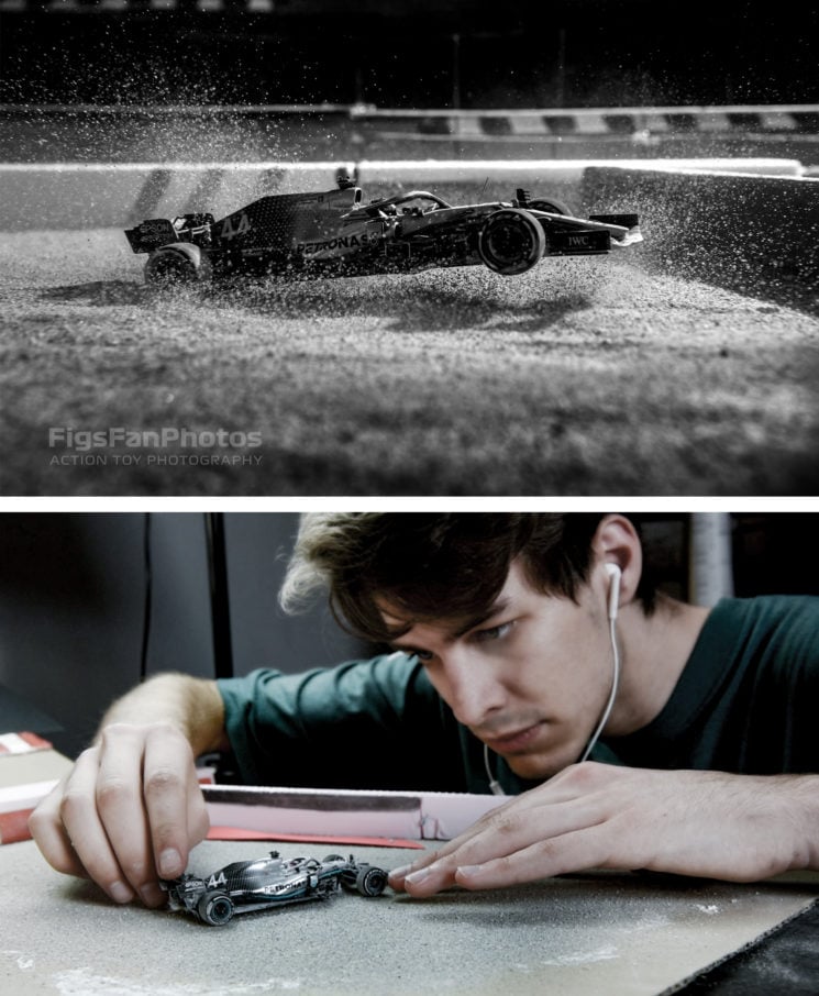 These epic Formula 1 photos were made with model cars, household items, and practical effects
