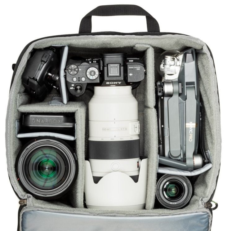 This is where something like the new Stash Master 13L from Mindshift gear can help. You can keep your old (non-photography) bag and eat it too. Essentially the Stash Master is a padded cube with a zipper on top. It’s kinda the right size to fit in almost any bag and convert it into a camera carrying device.