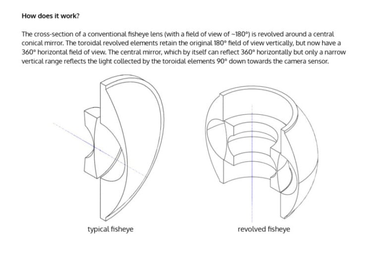 At its simplest breakdown, the lens essentially takes a cross-section of a typical fisheye lens, but then revolves it around a central axis. The image it captures is then reflected down onto the sensor via a mirror allowing you to see a complete view of the surroundings on a single flat image in a photograph. Or, a video, making those 8K cameras like the Canon EOS R5 and Sony A1 look pretty attractive right about now.