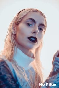 It should be pretty clear to see what the filter actually does but it’s also worth mentioning that I only use this diffusion filter in certain situations, specifically and only when there is a light behind the model. It’s this light behind the model that is creating the hazy effect you see here. The light is wrapping around the subject and then diffusing as it enters the filter on the front of the lens. Without the light behind the subject you can barely notice any difference to the shot. So much so that when I used to have screw-fit diffusion filters, I forgot I still had it on my lens and shot an entirely new setup without noticing the effect.