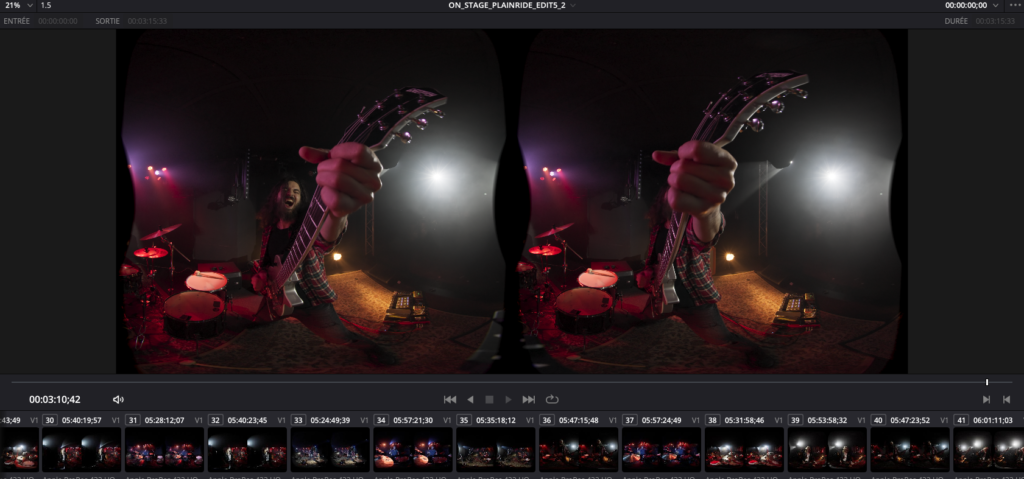 In my opinion, editing opens up a vast range of artistic options in the field of virtual reality videos. For our ON STAGE series, we’ve defined our own rules after experimenting with various editing principles. Here’s what we’ve come up with: we opt for highlighting the most immersive shots, those that literally plunge us into the musician’s eyes, keeping them for a significant length of time, often between 10 and 20 seconds.
